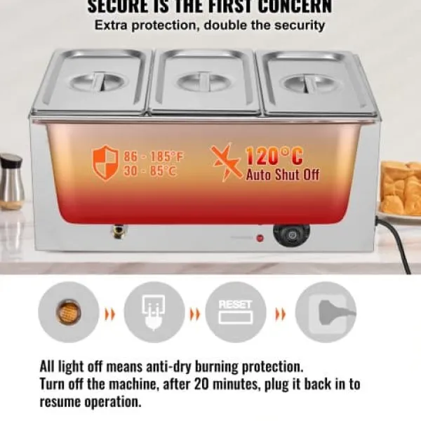Denna professionella bänkmonterade matvarmhållare är utformad för catering och restaurangbruk, och håller effektivt flera rätter varma och serveringsklara. Den robusta konstruktionen i rostfritt stål säkerställer hållbarhet och enkel rengöring, medan den justerbara temperaturkontrollen och torrkokningsskyddet ger säker och pålitlig drift. Enheten inkluderar tre matbehållare och användarvänliga funktioner för smidig servering och rengöring.