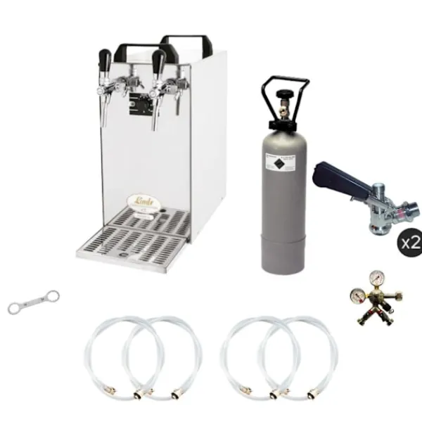 Komplett set – Öltapp, ölkylare, ölmaskin, öl dispenser, ölautomat, öltappingssystem – kontakt 40 två linjer torr kylare, run kylare 50 liter/h Kapacitet: 50 L/h vid 10 ° C TD Klar i 2-4 minuter Torr kylning Öltapp 2 rader Ljus torr kylning Öltapp tillverkad av rostfritt stål Kylteknik är genom 45% mer effektiv Består av: •Kontakt 40 ölutmatare 2 rader torr kylare, kör svalare 50 liter/h •liten torr kylning Öltapp tillverkad av rostfritt stål•uteffekt: 50 l/h •inkl. Rostfritt stål droppskål•inkl. Efter kylningskompensatorschankhähnen•i 2-4 min. Minuter redo•Kontroll intervallet 3 till 10 grader•torr kylning Öltapp 2 rader•Tekniska värden:•421 Watt/230V/50Hz, 1,83A•1/5 PS•Dimensioner: B/D/H 225/330/425 mm•i vikt: 26 KG•Egenskaper:•anslutningar john gäst•1 x tryckreducerare 2 rader CO2 för öl Öltapp 3 bar•1 x CO2 – flaska 2,0 kg•2 x CO2 slang komplett, 1,5 m•2 x öl slang John Guest – 3/8 och 5/8 skruv-på kontaktdonet 2,00 m – helt klar•kolsyra key fångenskap•2 x stift huvudet, ditt val: ingen, platt, stationsvagn, korg, Köpi Sätt upp en Kontakt 40 Öltapp och imponera på dina gäster och kunder med perfekt kyld öl varje gång! Oavsett om du har en bar eller restaurang, eller om du vill ha en kylig öl hemma, så kommer Kontakt 40 Öltapp att göra upphällningen lättare, snabbare och med perfekt resultat varje gång. Med dess högkvalitativa teknologi och enkla installation, blir Kontakt 40 Öltapp den perfekta lösningen för alla som vill ha gott om tid att njuta av deras kalla öl. Komplett uppställning, hög kvalitet, och enkel installation – det är inte förvånande att Kontakt 40 Öltapp är en av de mest eftertraktade ölmaskinerna på marknaden idag.