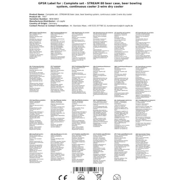 Komplett set – Öltapp – STREAM 80 ölkassett, flödeskylare 2-linjers torrkylare, KEG:Type M, KEG 2:Type M