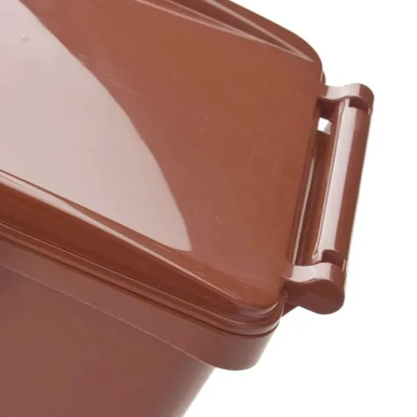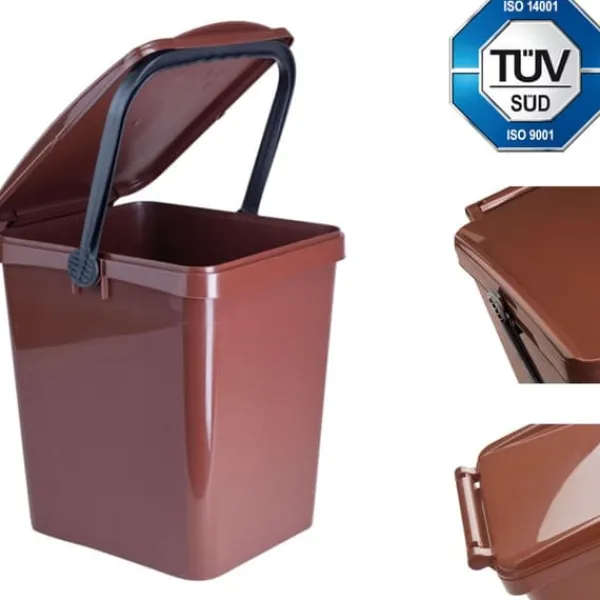 Producentkode:URBA 4649-5 Højkvalitetsbeholder fra den italienske producent SARTORI AMBIENTE til sortering af affald beregnet til genbrug. Der er en håndprægning i bunden af beholderen for at lette tømning af kurven. Håndtaget har en nyttig funktion til at låse dækslet mod åbning af børn eller dyr. Egenskaber og funktioner: – produceret i Europa i Italien – farvevarianter muliggør nem adskillelse – funktionelt håndtag med låglåsemekanisme – høj kvalitet af udførelse – glat og glat overflade – afrundede hjørner gør det lettere at rengøre beholderen – modstandsdygtig over for UV-stråler og kemiske forbindelser – velegnet til installation mikrochip-a Tekniske parametre – materiale: polypropylen – dimensioner (B x D x H): 295 x 340 x 353 mm (bredde med håndtag) – kapacitet: 21 L – farve: brun Sættet indeholder: – URBA 21L affaldssorteringsbeholder brun