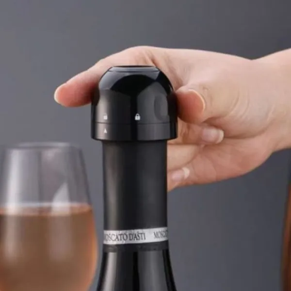 Denna svarta korkskruv i silikon är perfekt för att försegla dina vin- och champagneflaskor. Såld i paket om 2, den är miljövänlig och lätt att använda. Perfekt för en samtida stil, den kombinerar praktiskhet och design.