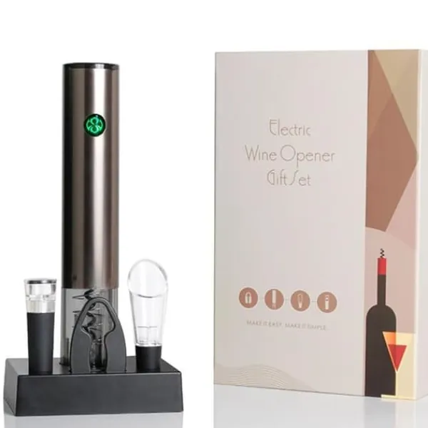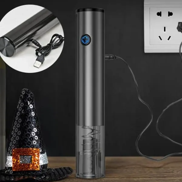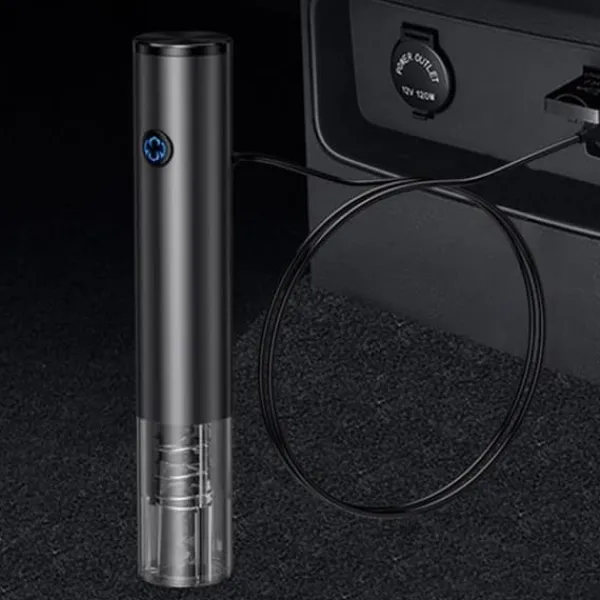 Upptäck vår elektriska korkskruv med en modern minimalistik design. Tillverkad i aluminiumlegering, mäter den 7,5 x 28,7 cm och fungerar automatiskt, vilket gör det enklare att öppna dina vinflaskor.