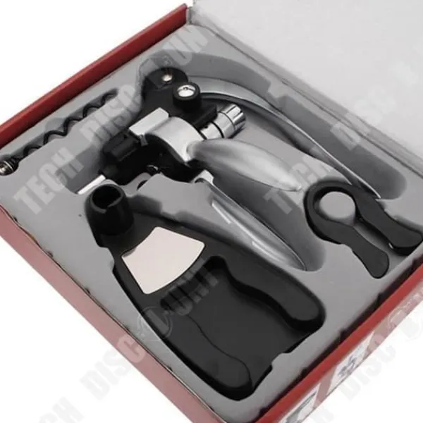 Upptäck vår metalliskt hävstångskorkskruv, perfekt för att öppna dina vin-, champagne- och ölflaskor. Detta paket innehåller 1 kaninöppnare, 1 klassisk korkskruv och 1 reservskruv. Idealisk för vuxna, den är perfekt för fester och födelsedagar.