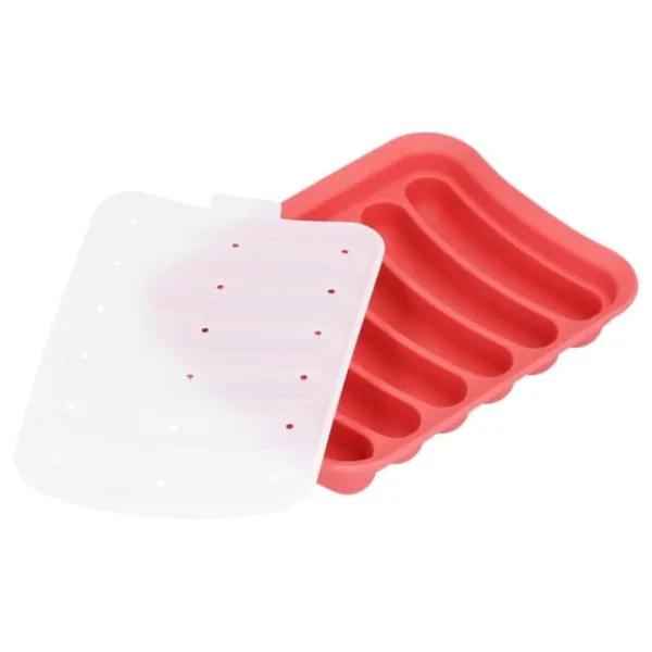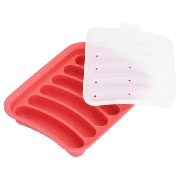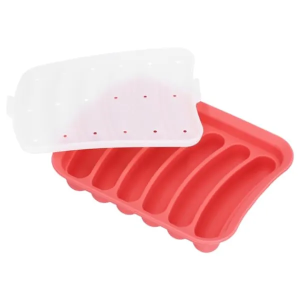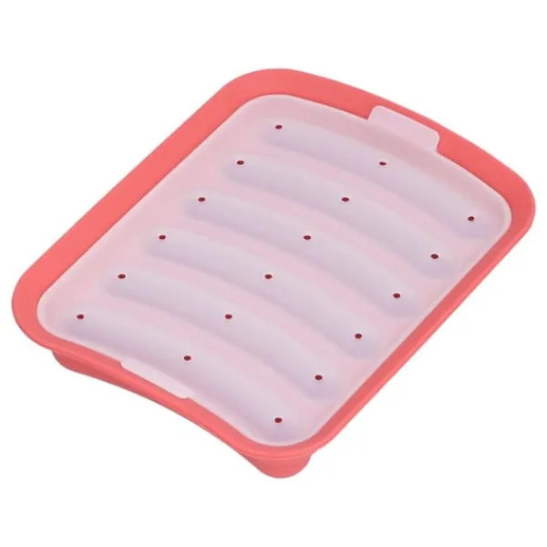 2、Denna korvform är gjord av utsökt hantverk och är utrustad med 6 formspår. Botten, insidan och kanterna är non-stick för att hjälpa dig att göra dina egna hälsosamma och läckra korvar.