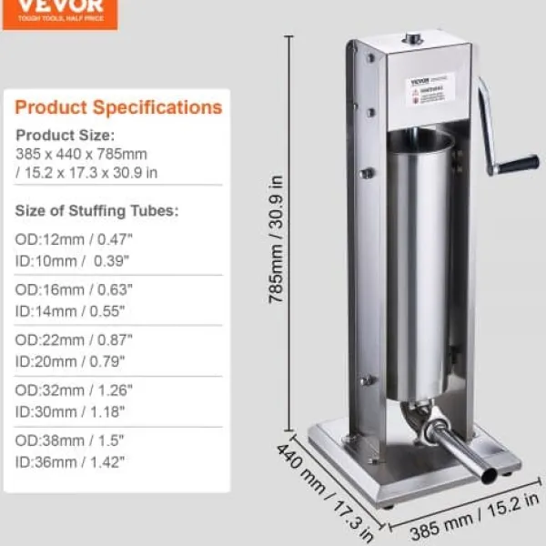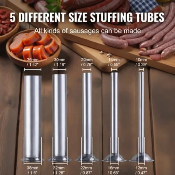 Denna manuella korvstoppare är utformad för både hemmabruk och kommersiellt bruk, och erbjuder effektiv korvtillverkning med stor kapacitet och exakt kontroll. Dess tvåväxlade drift och ergonomiska handtag säkerställer enkel och bekväm användning, medan konstruktionen i livsmedelsklassat rostfritt stål garanterar säkerhet och hållbarhet. Den avtagbara designen och de många tillbehören gör den mångsidig för tillverkning av korv, varmkorv och mer.