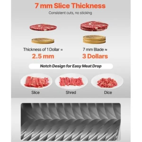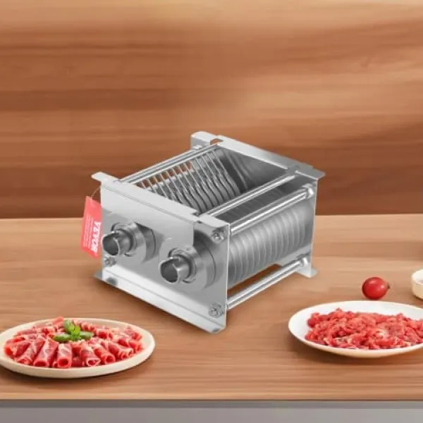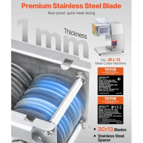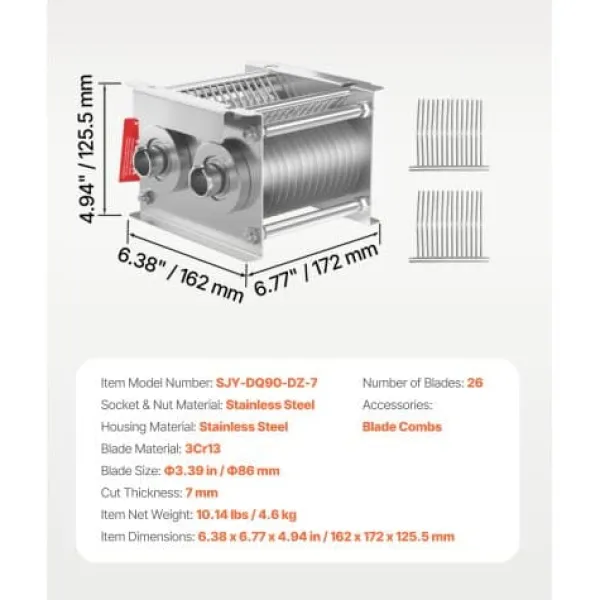 Socket & Nut Material: 201 rostfritt stål, Blade Material: 3Cr13, Housing Material: 201 rostfritt stål, Cut Thickness: 7 mm, Number of Blades: 26, Item Net Weight: 4,6 kg, Item Dimensions: 16,2 x 17,2 x 12,6 cm, Blade Size: Ф8,6 cm