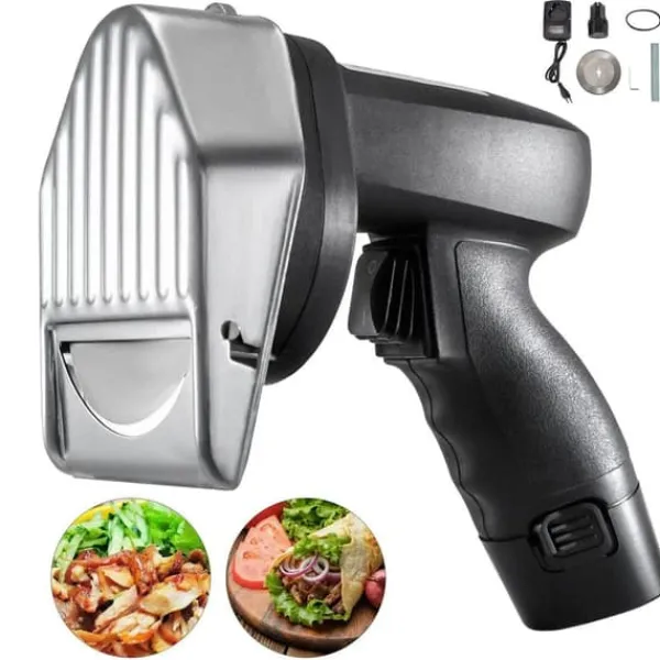 Gyro Slicer är sladdlös och kommer med två uppladdningsbara batterier (ett för backup). Du behöver inte oroa dig för irriterande nätsladdar när du skär kött.