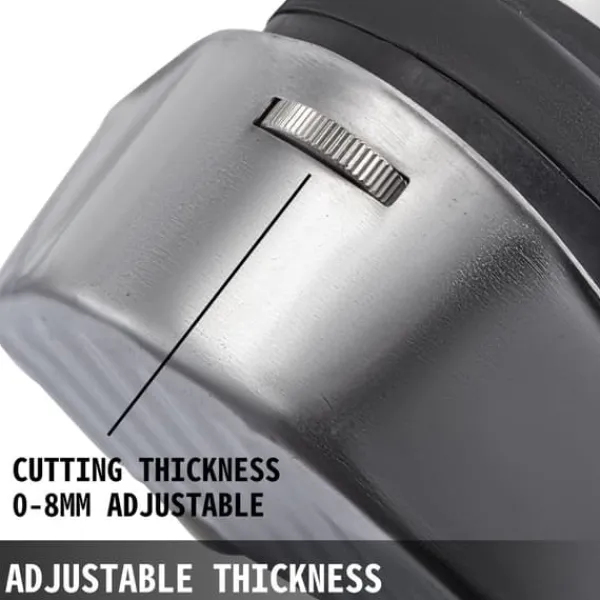 – Flexibel att anpassa: Genom att justera skruven på toppen kan skärtjockleken justeras från 0 till 0,3 tum (0-8 mm) för att möta dina behov. Använd sidoskruvarna för att låsa tjockleken efter justering.