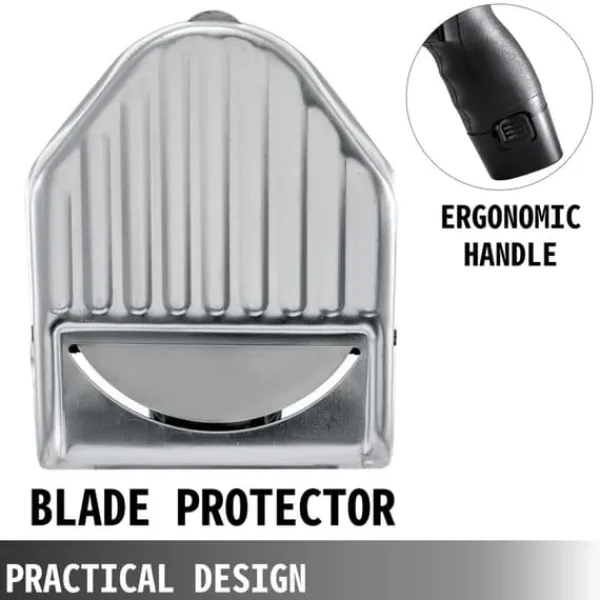 Det extremt vassa bladet skär genom lamm, kyckling och allt annat du gillar med lätthet och skicklighet. Den önskade tjockleken kan justeras med de övre och sidoskruvarna. Det praktiska bladskyddet skyddar bladet och användaren. Det ergonomiska handtaget passar handen perfekt. Inkluderar extra runt blad, litet bryne och insexnyckel.