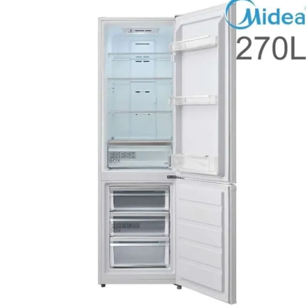 Kylskåpet Midea MDRB380FGE01A kombinerar avancerad teknik med noggrann design för att bevara matens färskhet och ge en bekväm användning. No Frost-systemet eliminerar isbildning, medan Super Cooling-funktionen snabbt kyler ner färska produkter. Med energiklass E får du hög prestanda med låg energiförbrukning. Den tysta driften och kapaciteten på 270 liter gör det till ett pålitligt val för hemmet.
