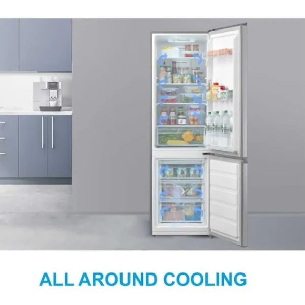 Kylskåpet Midea MDRB380FGE01A kombinerar avancerad teknik med noggrann design för att bevara matens färskhet och ge en bekväm användning. No Frost-systemet eliminerar isbildning, medan Super Cooling-funktionen snabbt kyler ner färska produkter. Med energiklass E får du hög prestanda med låg energiförbrukning. Den tysta driften och kapaciteten på 270 liter gör det till ett pålitligt val för hemmet.
