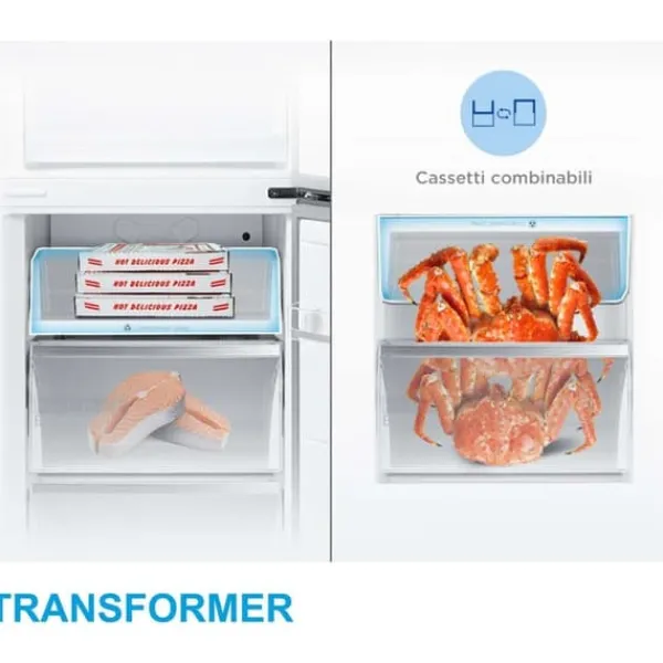 • Hyllor i kylskåpsdelen: 3 flaskställ + 4 hyllor + 2 lådor