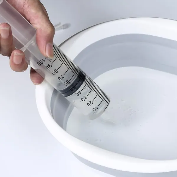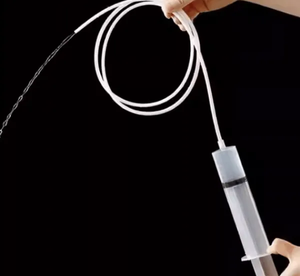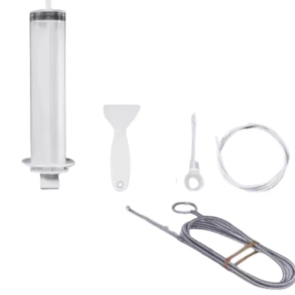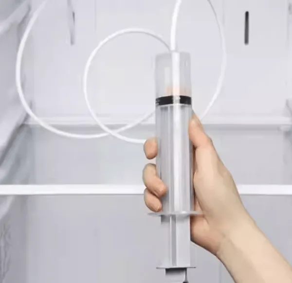 Spruta och slang: Med 100 ml-sprutan och 1,5-metersslangen rensar du enkelt bort överflödigt vatten och rengör svåråtkomliga områden i ditt kylskåp.