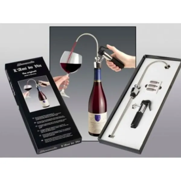 L ’Ami du Vin vin bar – gåva L’ Ami du Vin gåva uppsättning är den perfekta gåvan för vinkännaren och – älskare. Den innehåller ett doseringshuvud, en skyddande gassensorer och tre skyddsgas kapslar. De fördelnings huvud passar på varje vinflaska och rör av rostfritt stål också kan vara i H han anpassa sig till alla flask längd. vinet bevaras när hälla genom användningen av skyddsgas kapslar i skyddsgas sändare och få full smak. Med en skyddande gas sändare k ouml; godtyckligt många burk Ausschankk huvuden drivs .