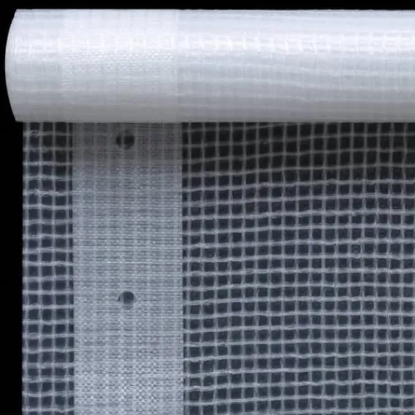 Reservfolien för växthus är tillverkad av PE-material med låg densitet och är förstärkt med PE-nät med hög densitet, vilket gör den slitstark samt vatten- och UV-beständig. Reservöverdraget har 7 cm breda och vävda PE-remmar på båda sidor som har hål för enkel fastsättning.