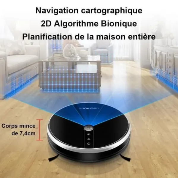Bionisk algoritm för 2D-kartnavigering: Robotdammsugaren kommer automatiskt att utföra kartnavigering av huset och sedan noggrant positionera den optimala rengöringsplanen. Rengöringseffektiviteten förbättras avsevärt på grund av den regelbundna rengöringsvägen.