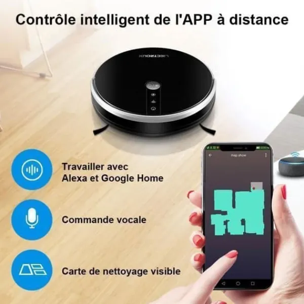 Kontroll via APP: Inte bara kan du använda fjärrkontrollen, men du kan också styra rösten via Google Assistant och Alexa. På appen kan du schemalägga en rengöring, hantera kartor och lokalisera din robot under användning, etc.