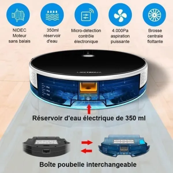 Utbytbar vattentank och sopkorg: Lådtypen av vattentanken och sopkorgen är lätt att byta. Sätt bara in vattentanken i botten av robotdammsugaren, sedan är installationen klar.