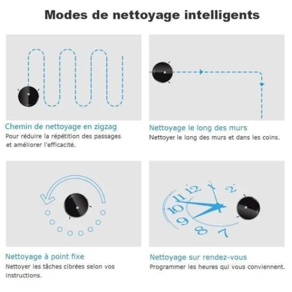 Lågt ljud: Den borstlösa motorn med hög prestanda och hög rotationshastighet gör att roboten kan arbeta med lågt ljud utan att påverka ditt liv.