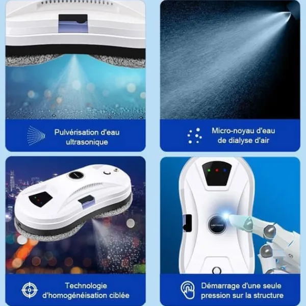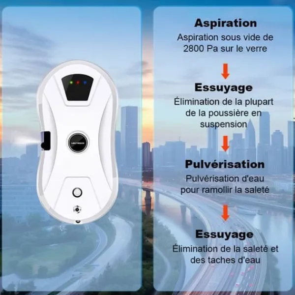 Borstlös motor: Förbättrad borstlös motor med hög sugkraft för att fästa fönsterrengöraren stadigt på den vertikala glasytan med hög hastighet och högt tryck. Oroa dig inte för att den ska falla under drift.