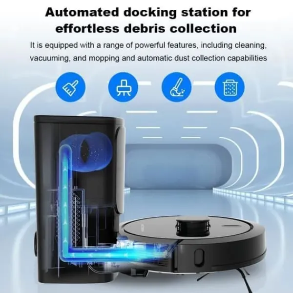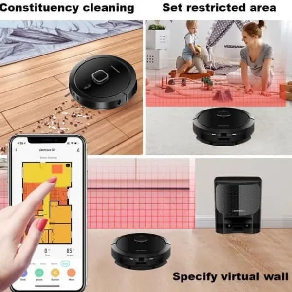 LIECTROUX G7 4-i-1 Robotdammsugare med Automatisk Dammsamlare: Sugdning och tvätt 4000 Pa – Laser-navigering