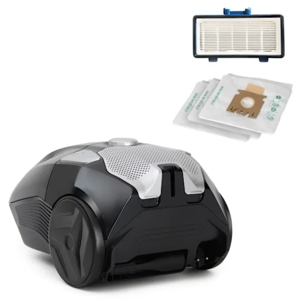 Tvättbart HEPA-filter och tre 5-liters dammpåsar ingår Det tvättbara HEPA 13-filtret är en viktig del av dammsugaren som effektivt eliminerar fina dammpartiklar och allergener, vilket säkerställer ren och hälsosam luft i ditt hem. Att den kan tvättas under rinnande vatten gör den enkel att underhålla, vilket i sin tur möjliggör upprepad användning, vilket är både bekvämt och ekonomiskt. 5-literspåsen av HEPA-tyg är en annan viktig funktion som gör att dammsugaren kan fungera länge utan att behöva bytas ut ofta, vilket ökar rengöringseffektiviteten och användarvänligheten.