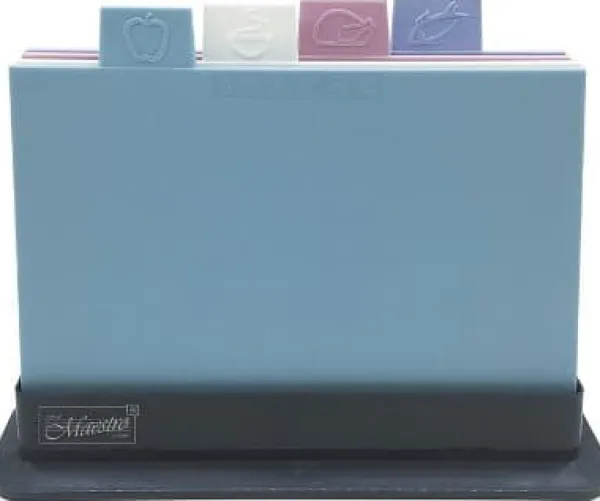 Maestro MR-1787 skärbrädeset är ett komplett set, perfekt för att hacka en mängd olika ingredienser. Tillverkade av slitstark plast, ger dessa dubbelsidiga skärbrädor en hållbar och säker yta för matlagning. Setet innehåller fyra dubbelsidiga skärbrädor, vilket ger större flexibilitet under matlagning. Varje bräda mäter 29 x 19,5 cm och är 0,6 cm tjock, vilket ger gott om arbetsyta för en mängd olika livsmedel. De rymmer enkelt allt från grönsaker och frukt till kött och fisk. Tillägget av ett stativ gör setet enkelt att förvara, vilket inte bara sparar utrymme i köket utan också håller brädorna snygga under förvaring. Setet mäter kompakta 32 x 24 x 7 cm, så det kan enkelt förvaras i en låda eller på en hylla. Maestro MR-1787 skärbrädeset erbjuder både funktionalitet och hållbarhet och är ett utmärkt val för alla matlagningsentusiaster och professionella kockar. Skaffa detta praktiska set idag och njut av bekvämligheten och effektiviteten med att laga läckra måltider i ditt kök.