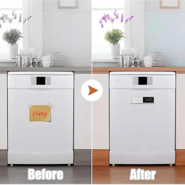 Med denna magnetiska skylt visar du lätt för övriga familjemedlemmar eller kollegor på arbetsplatsen om disken är ren eller smutsig. Genom detta kommer alla att enkelt kunna avgöra om disken är redo att plockas ut eller om diskmaskinen behöver startas när den är full.