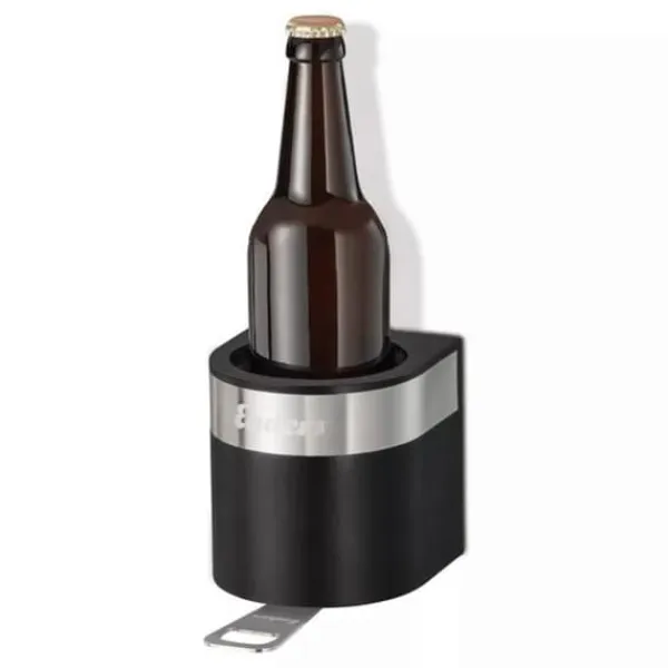 Magnetisk Flaskställ med Öppnare Enders de starka magneterna säkerställer ett säkert grepp för flaskor upp till Ø 8,5 cm inklusive öppnare i rostfritt stål den avtagbara kylförpackningen håller drycken kall (ingår ej) modern design med panel i rostfritt stål Mått: L 10,5 x B 10 x H 10,5 cm