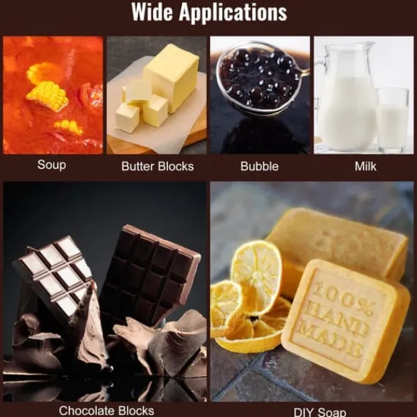 Allsidig användning: Denna professionella uppvärmda chokladsmältare är perfekt för att värma och smälta chokladblock, smörblock, grädde, mjölk och mycket mer. Den passar för olika tillfällen som familjefester, hotellrestauranger och bagerier.