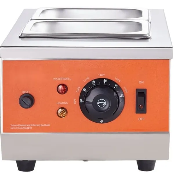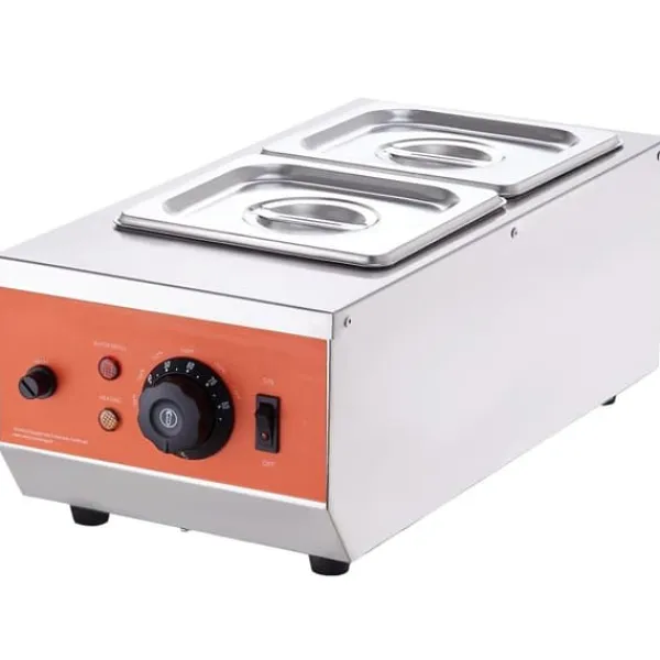 Hölje av rostfritt stål 304: Hela höljet på chokladvärmaren är tillverkat av robust, livsmedelsklassat rostfritt stål 304 med avtagbara grytor och ett rent, hygieniskt dammskydd som erbjuder utmärkt isolering och värmebevarande egenskaper.