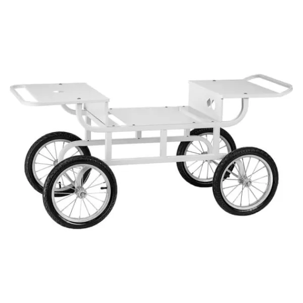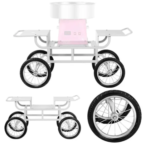 Sockervaddsvagnen är universell. Den används för att transportera och visa sockervaddsmaskiner med måtten 360/540 x 460 mm. RCZT-01W-modellen är gjord av starkt stål; har en unik klassisk design. De stora hjulen på vagnen från Royal Catering gör det lättare att transportera utrustning. Två hyllor rymmer bekvämt tillbehör, kassaapparater och liknande föremål.