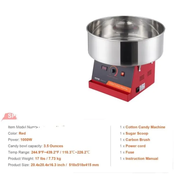 - hjälpsamma tillbehör: inkluderar en socker skopa för enkel förberedelse, vilket gör sockervaddstillverkningen ännu mer njutbar.