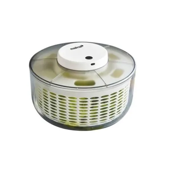 Upptäck Mastrads elektriska salladsslungare, den perfekta följeslagaren för enkel och snabb torkning av dina sallader. Med en diameter på 26 cm förenklar denna slungare din vardag; det räcker med att trycka på startknappen för att torka din sallad på ett ögonblick. Mycket mer effektiv än manuella slungare når den en imponerande hastighet på 600 varv per minut. De halkfria fötterna garanterar optimal stabilitet och säkerhet. Material: Plast Färg: Vit Längd: 26 cm Bredd: 26 cm Diskmaskinssäker