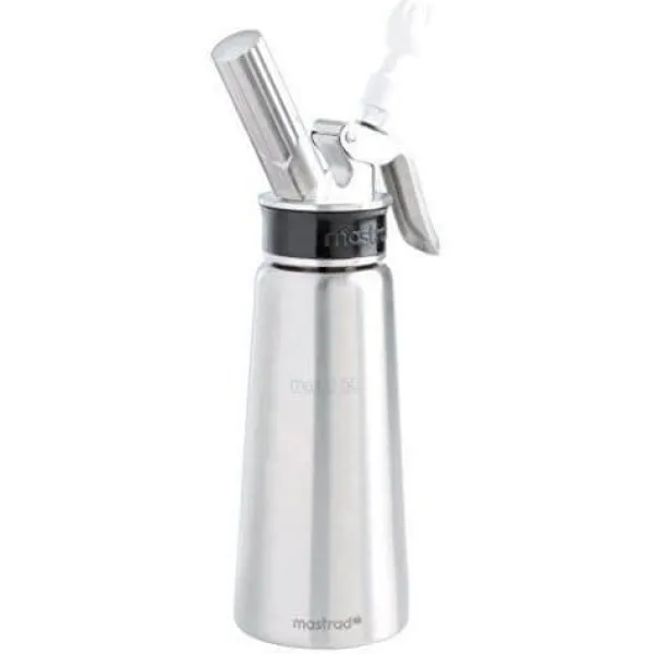 0,5L sifon i rostfritt stål från Mastrad. Helt rostfritt stål, denna Mastrad sifon för varmt och kallt skum ger ett professionellt verktyg in i ditt kök. Användningen är mycket enkel: häll preparatet i den rostfria ståltanken, stäng sifonen, sätt i en gaspatron, placera sifonen i kylskåpet eller i en bain-marie enligt receptet och sifonera dina skum och espuma med ett enkelt tryck Dess struktur….