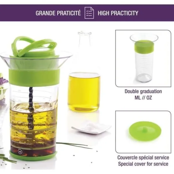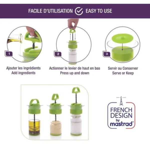 Toppången för såser MASTRAD F26908 är ett praktiskt och mångsidigt köksredskap. Med sin dubbla gradskala i ml och oz kan du enkelt mäta ingredienserna till dina såser. Den halkfria silikonbandet säkerställer ett bra grepp. Handmixern låter dig göra såser, emulsioner och majonnäser på ett ögonblick.