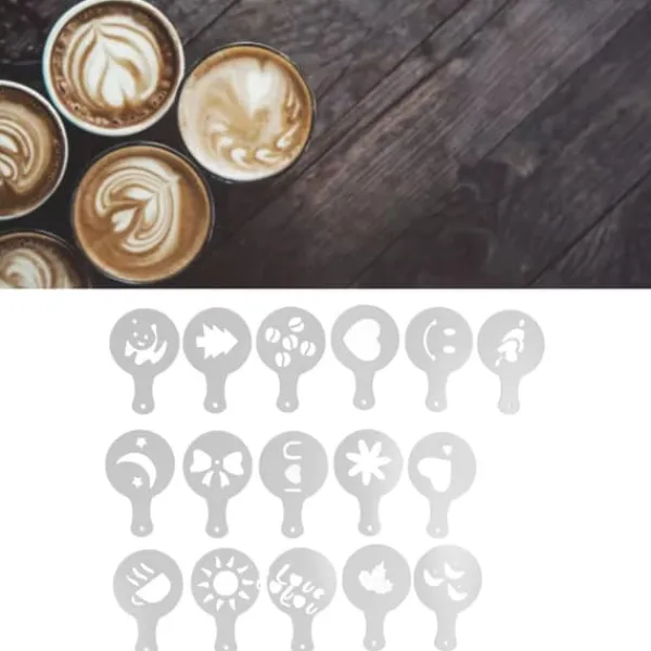 2、[UTÖKNAD DESIGN] Du kan använda dessa kaffedekorationsschabloner för att enkelt göra utsökta mönster till din havrecappuccino och varm choklad.