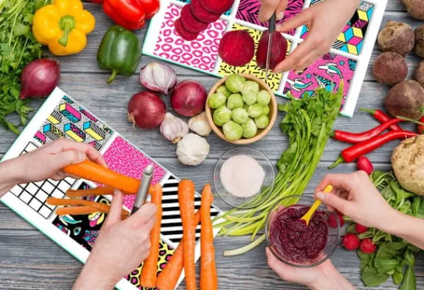 vid matlagning för elektriska, keramiska och gasspisar. När det gäller gasspisar rekommenderar vi att man ägnar särskild uppmärksamhet åt användningen. Om hällen bara lutar mot väggen, håll ett säkerhetsavstånd på 15 cm från brännaren. Plattan kan limmas fast på väggen med hjälp av speciell skumtejp (finns i vår butik) då kan avståndet från brännaren vara mindre . När du lagar mat bör du inte trycka kastruller etc. mot glas med grafik. ✅Skärbräda