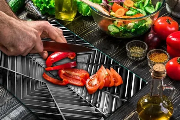 Mat- & Dryckesschabloner-SKÄRBRÄDA I GLASPLATTA 52×40 GRÅ TUNNEL