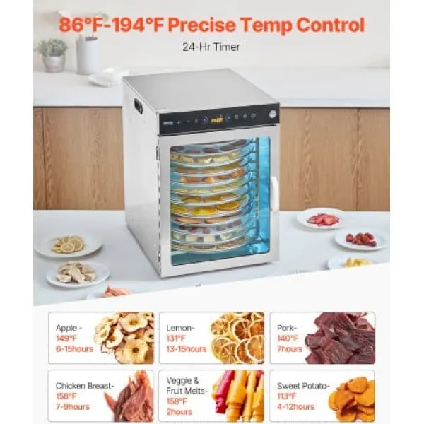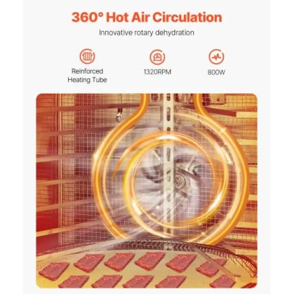 Denna roterande matdehydrator erbjuder effektiv och jämn torkning för ett brett utbud av ingredienser, bevarar näringsämnen och smak utan behov av ständig övervakning. Med stor kapacitet, hållbar konstruktion i rostfritt stål och användarvänliga digitala kontroller är den idealisk för att förbereda jerky, torkad frukt, grönsaker, örter och hundgodis hemma. Det synliga fönstret och tyst drift gör det bekvämt och enkelt att övervaka torkningsprocessen.