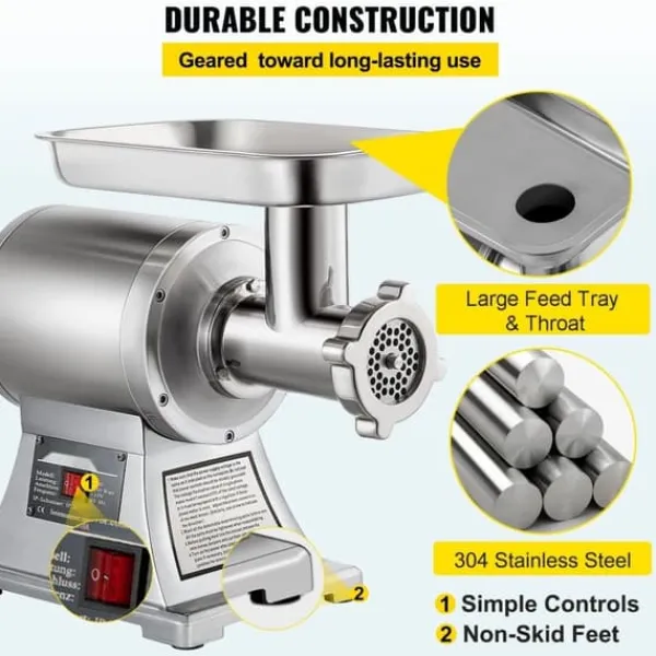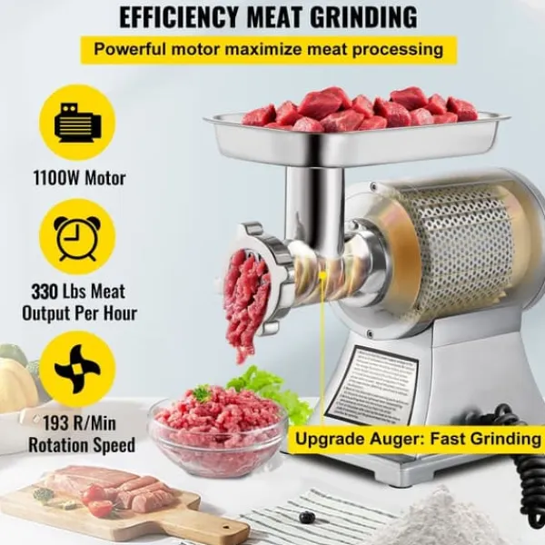 Den 850-watt högpresterande motorn har en hastighet på 193 varv per minut och kan mala upp till 150 kg kött per timme, vilket avsevärt förbättrar effektiviteten vid köttmalning.