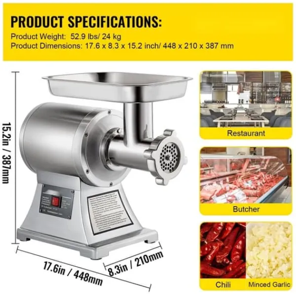 Köttkvarnen är perfekt för restauranger, stormarknader, snabbmatsställen och slaktare för att mala kött till hamburgare, köttfärslimpa, med mera.