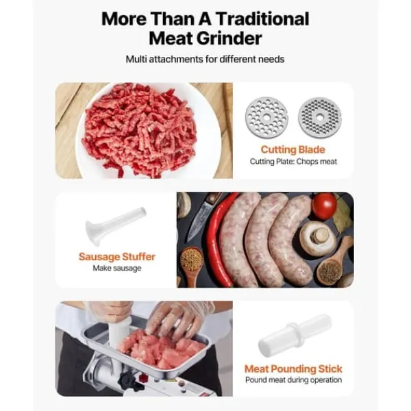 - Möjligheten att mala olika köttsorter som fläsk, nötkött, viltkött, kyckling och fisk samt att göra korv ger mångsidighet till användningen.