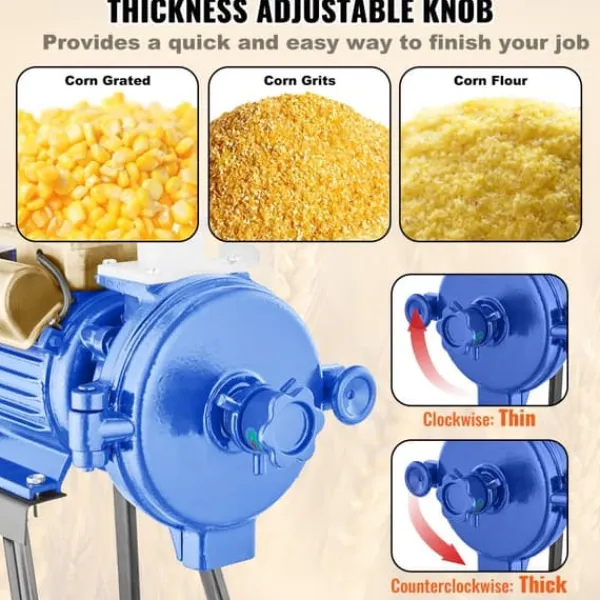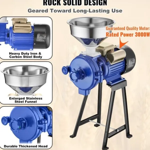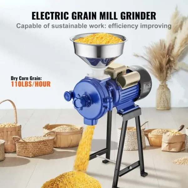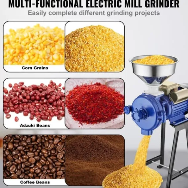 - Allsidig Användning: Den här elektriska kvarnen är idealisk för allt från tofu och stärkelse till ris- och majsmjöl. Den kan effektivt mala en mängd grödor som vete, ris, majs och sojabönor till önskad finhet.