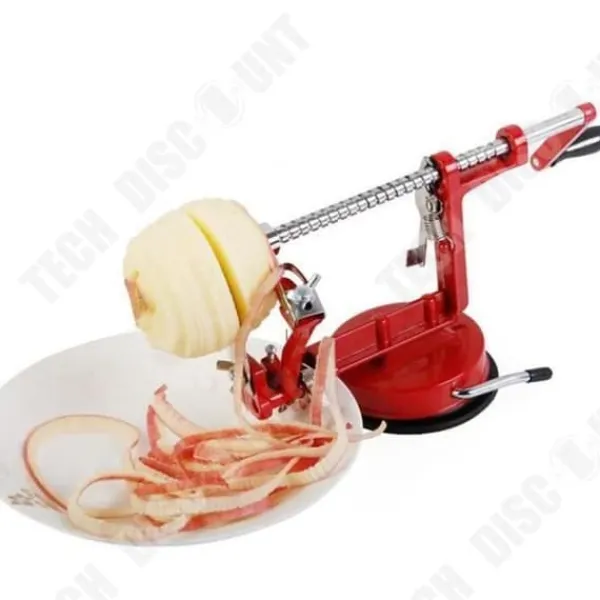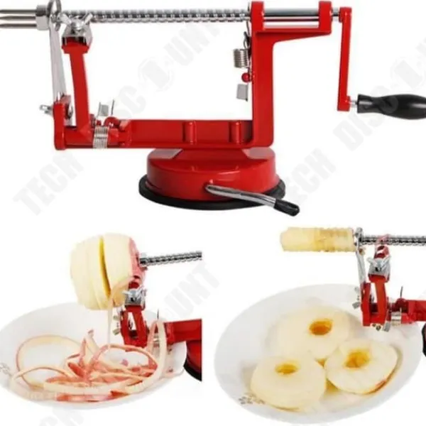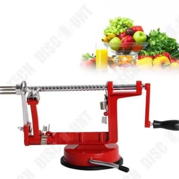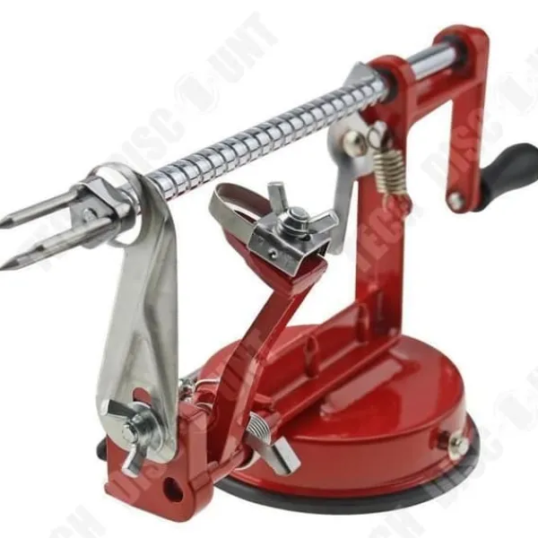 Upptäck äppelskalaren 3-i-1 med vev, en mångsidig köksaccessoar i rostfritt stål. Dess röda färg och praktiska design gör det enkelt att skala och skära frukter. Perfekt för matlagningsentusiaster, detta verktyg av hög kvalitet gör fruktförberedelserna snabba och trevliga.