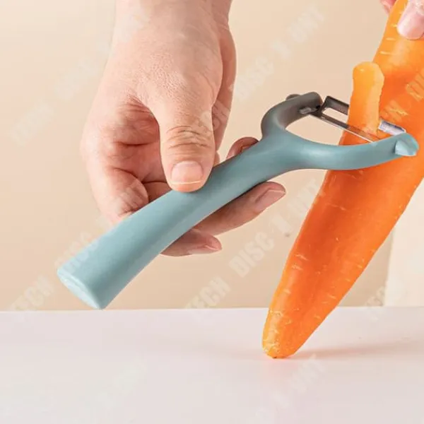 Denna plast- och rostfria stålskalare är ergonomisk och lätt. Den gör det enkelt att skala frukter och grönsaker tack vare sina dubbla roterande blad. Lätt att rengöra och diskmaskinskompatibel, den är perfekt för daglig användning. Ett praktiskt och estetiskt tillbehör för ditt kök.