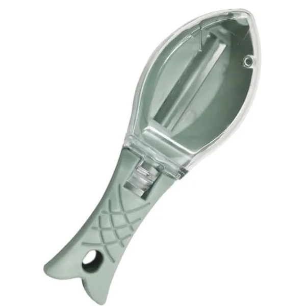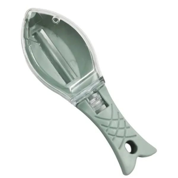 2, Praktiskt verktyg: Fiskfjällborttagaren har ett bottenspår, lätt att skrapa fiskfjäll, med lockdesign, kan lagra fiskfjäll, hålla din bordsskiva ren och snygg.
