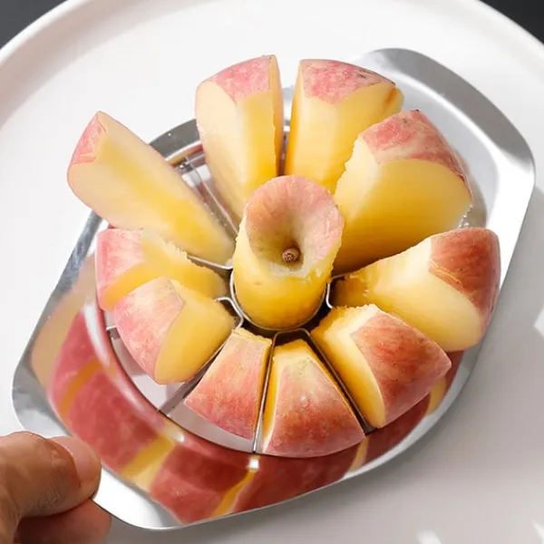 Lätt att rengöra: Tillverkad av förstklassigt rostfritt stål, denna fruktskärare är resistent mot rost och korrosion. Den tål även diskmaskin, vilket gör rengöringen snabb och bekväm.