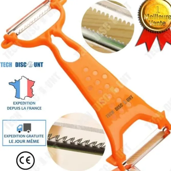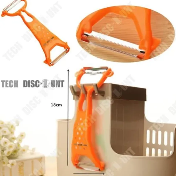 Upptäck TD® multifunktionella riv- och skalriven, perfekt för att skala, riva och skära dina grönsaker. Med sina mått på 17,5 x 12 cm och en lätt vikt på 41 g är den lätt att transportera och använda. Tillverkad i PS och 420J2 är den både praktisk och prisvärd, perfekt för alla dina matlagningsförberedelser.