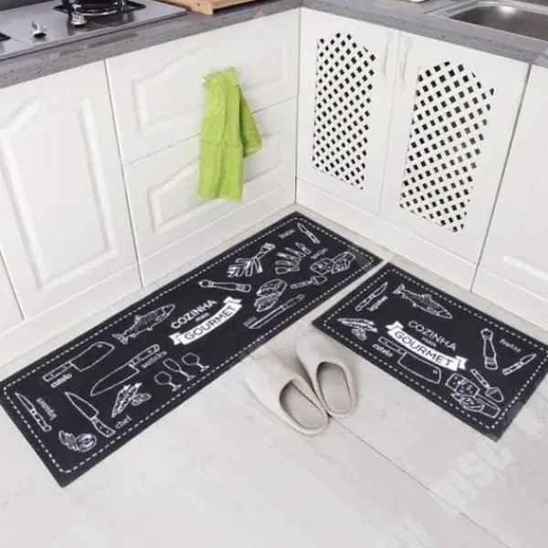 Produktnamn: Köksmatta framför diskbänken – 2 delar Kategori: KÖKSMATTA Egenskaper: Färg(er): Svart och vit Kvalitet: AAA+++ Produktmaterial: Polyester Mått: 40*60+40*120cm Enhetskonvertering: 1 tum=2,54cm eller 1cm=0,393tum Vikt: ca 800g OBSERVERA: 1.Dimension: Måtten mäts för hand, vänligen tillåt en liten skillnad på max 2cm;